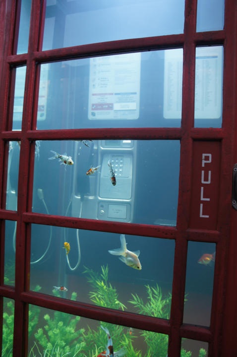 | Nghệ sĩ Benedetto Buffalino và nhà thiết kế Benoit Deseille tạo ra những bể cá đặc biệt nhằm thể hiện tình yêu với các bốt điện thoại công cộng từng rất phổ biến trong quá khứ. Ảnh: Benedetto Buffalino |