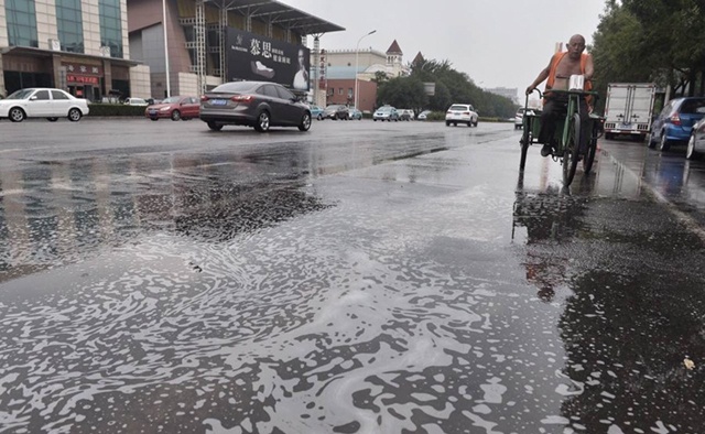Bọt trắng xuất hiện sau mưa tại thành phố Thiên Tân
