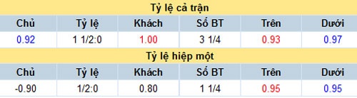 Tỷ lệ châu Á đầu hiệp 2.