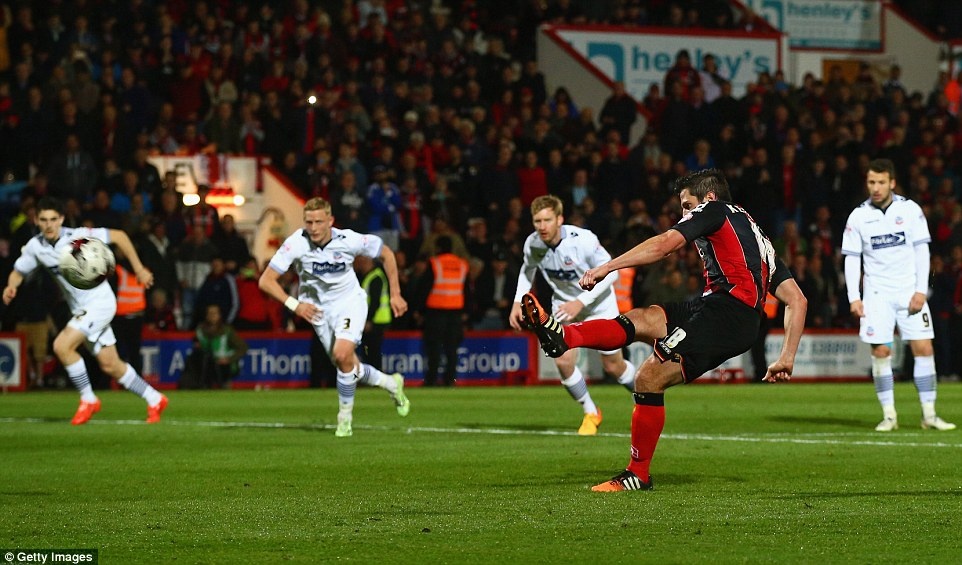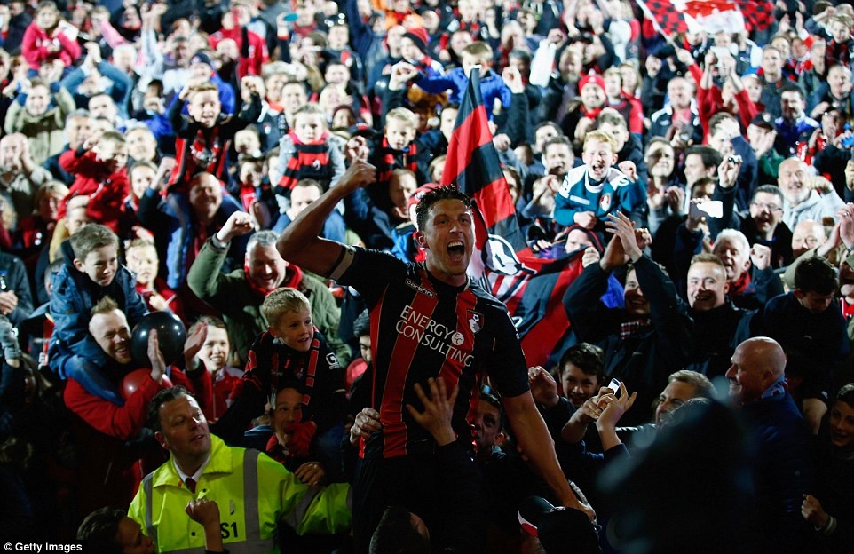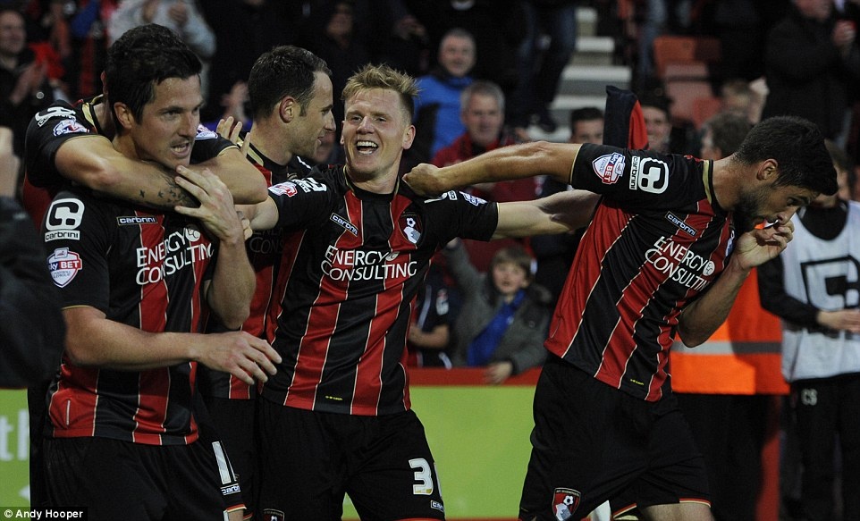 | Chiến thắng 3-0 giúp AFC Bournemouth là đội thứ hai lên chơi ở Premier League mùa tới sau Watford. |