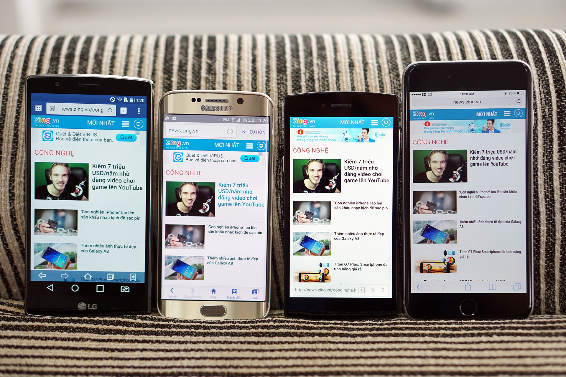 | Bphone hiển thị hiệu quả ngang ngửa với iPhone 6 Plus, với 4 tin bài trên một trang. Trong khi đó, LG G4 và Galaxy S6 Edge tuy có màn hình nhỉnh hơn nhưng chỉ hiển thị được 3 tin bài/trang. Có thể kết luận Bphone có khả năng hiển thị hiệu quả ngang iPhone 6 Plus khi duyệt web. |