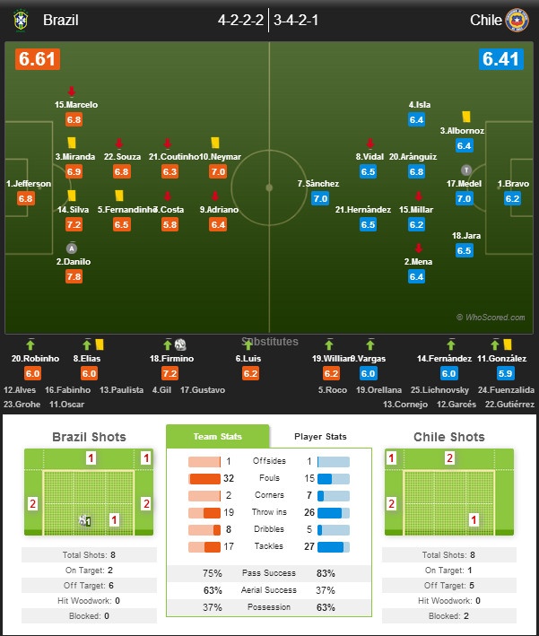 Tỷ lệ trận đấu cho thấy bộ mặt nhạt nhòa của Brazil trước Chile.