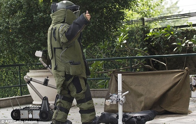 Cảnh sát sử dụng robot để dò và phát hiện bom.