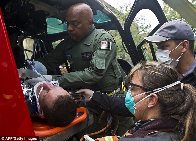 Trực thăng được điều động tới để đưa các nạn nhân bị thương nghiêm trọng đi cấp cứu.