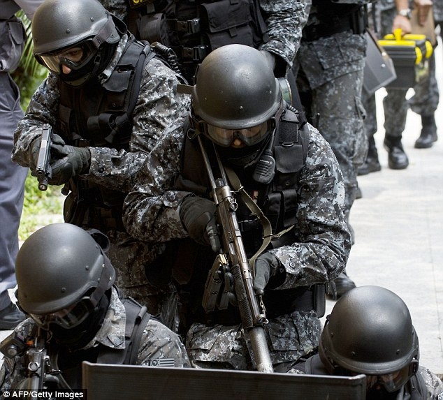 Nhân viên vũ trang diễn tập chống khủng bố.