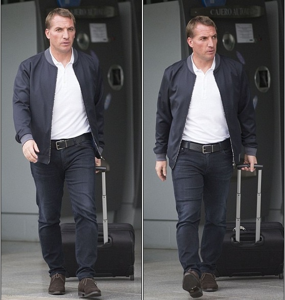 | HLV Brendan Rodgers có mặt tại Malaga, Tây Ban Nha, sáng 5/10. Ảnh: Daily Mail. |