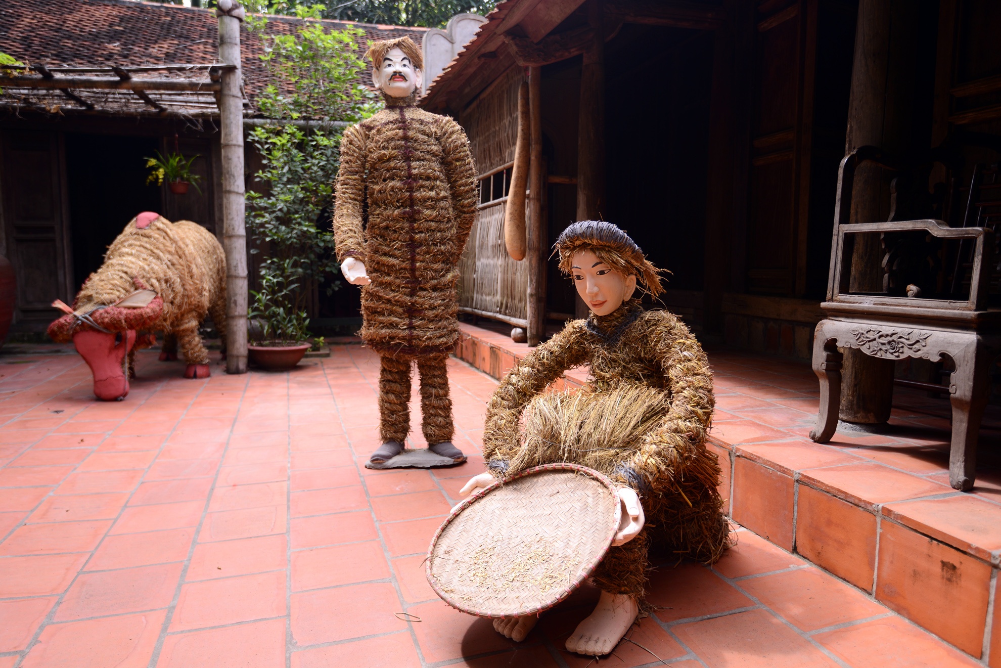 Người làng cổ Đường Lâm (Sơn Tây, Hà Nội) đang tạo nên những sản phẩm bằng rơm tượng trưng cho nền nông nghiệp Việt Nam để trưng bày phục vụ loại hình du lịch mùa lúa chín.