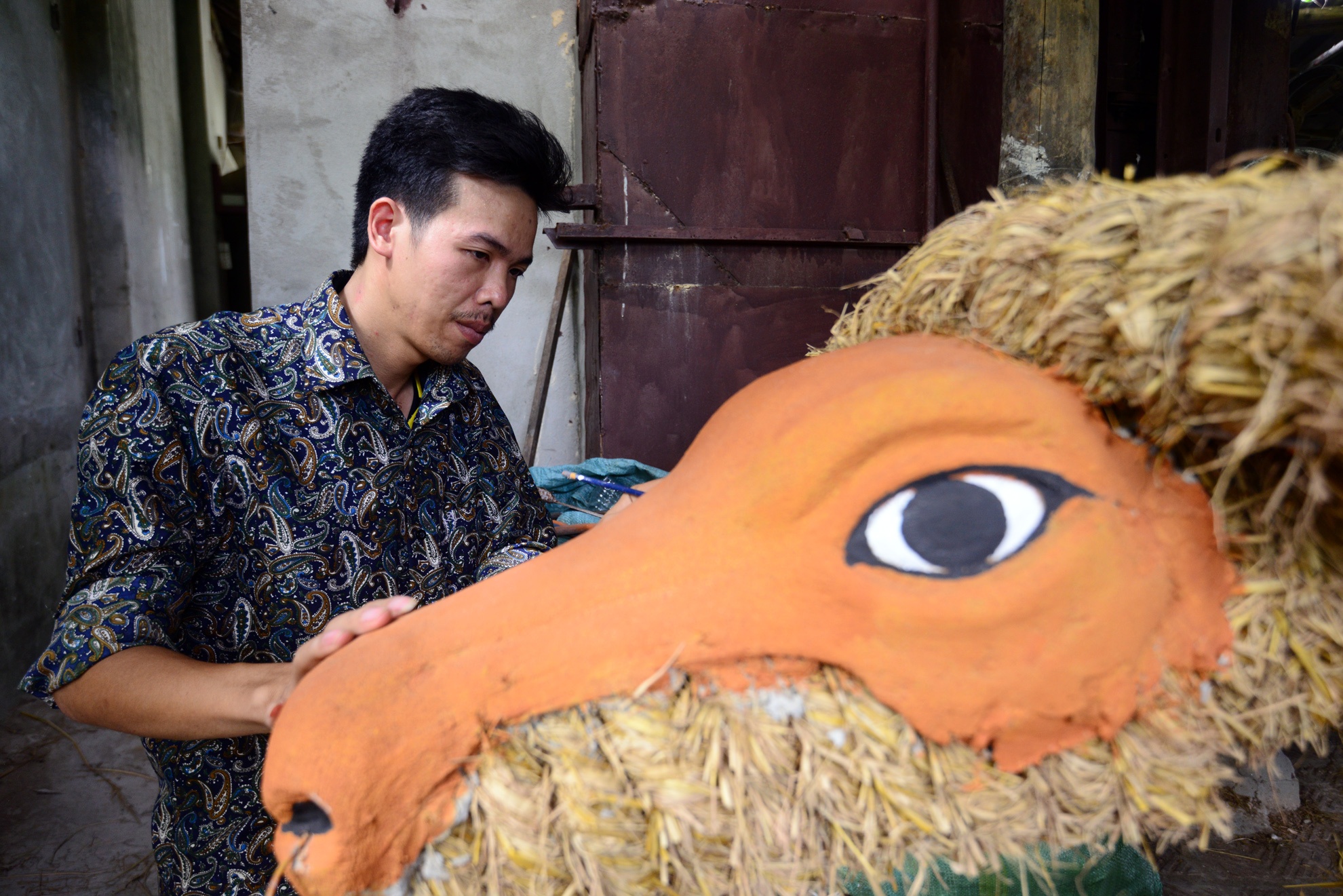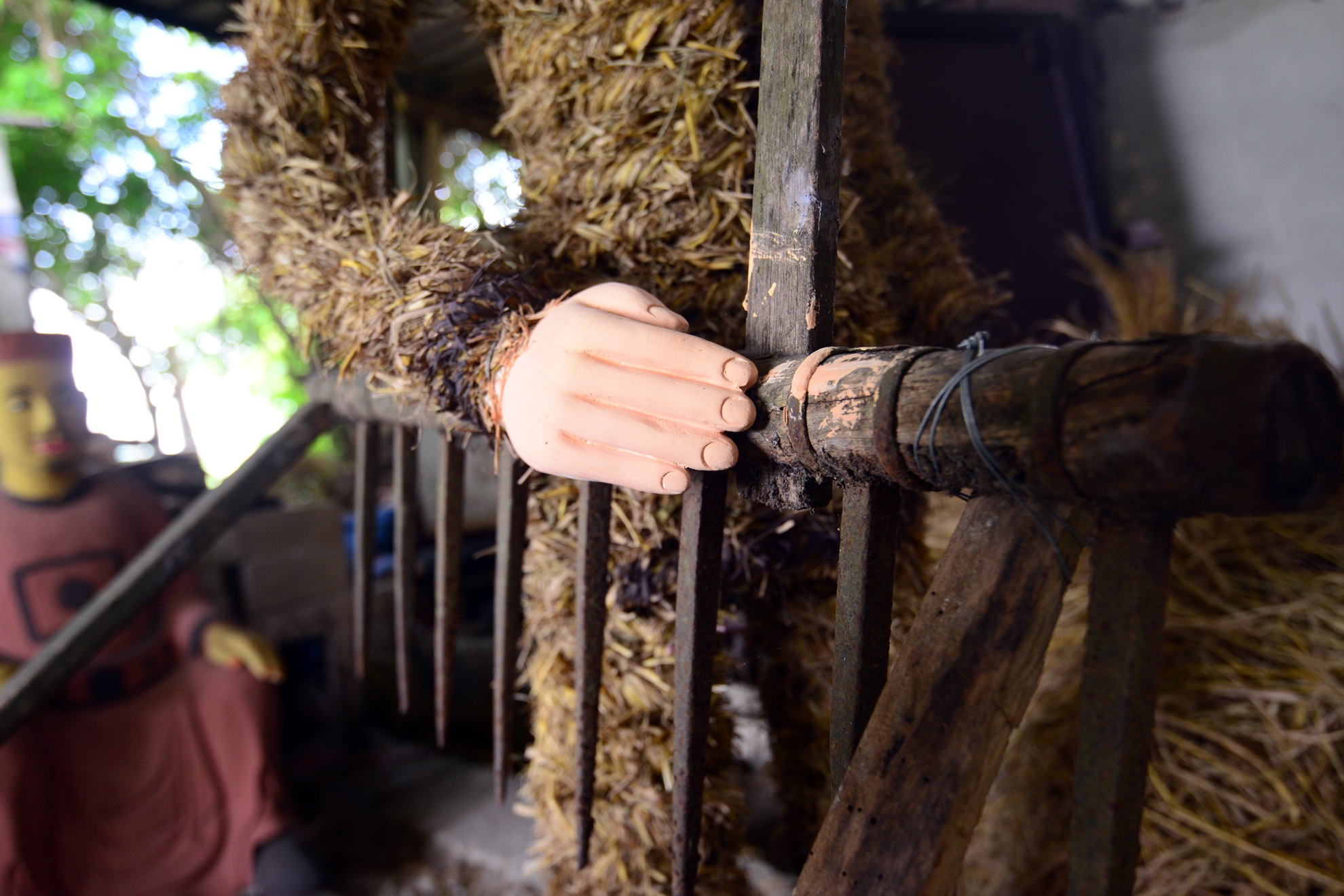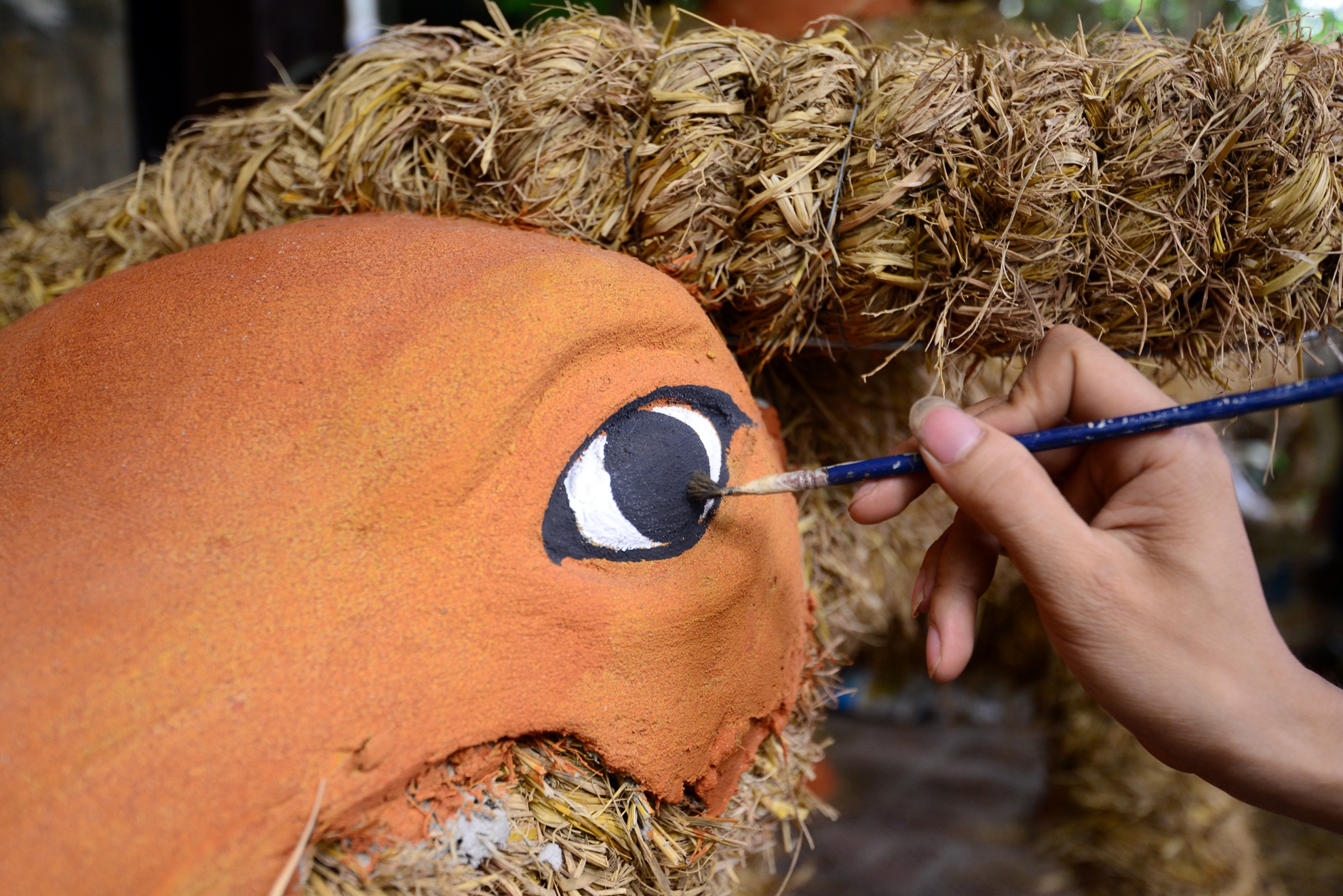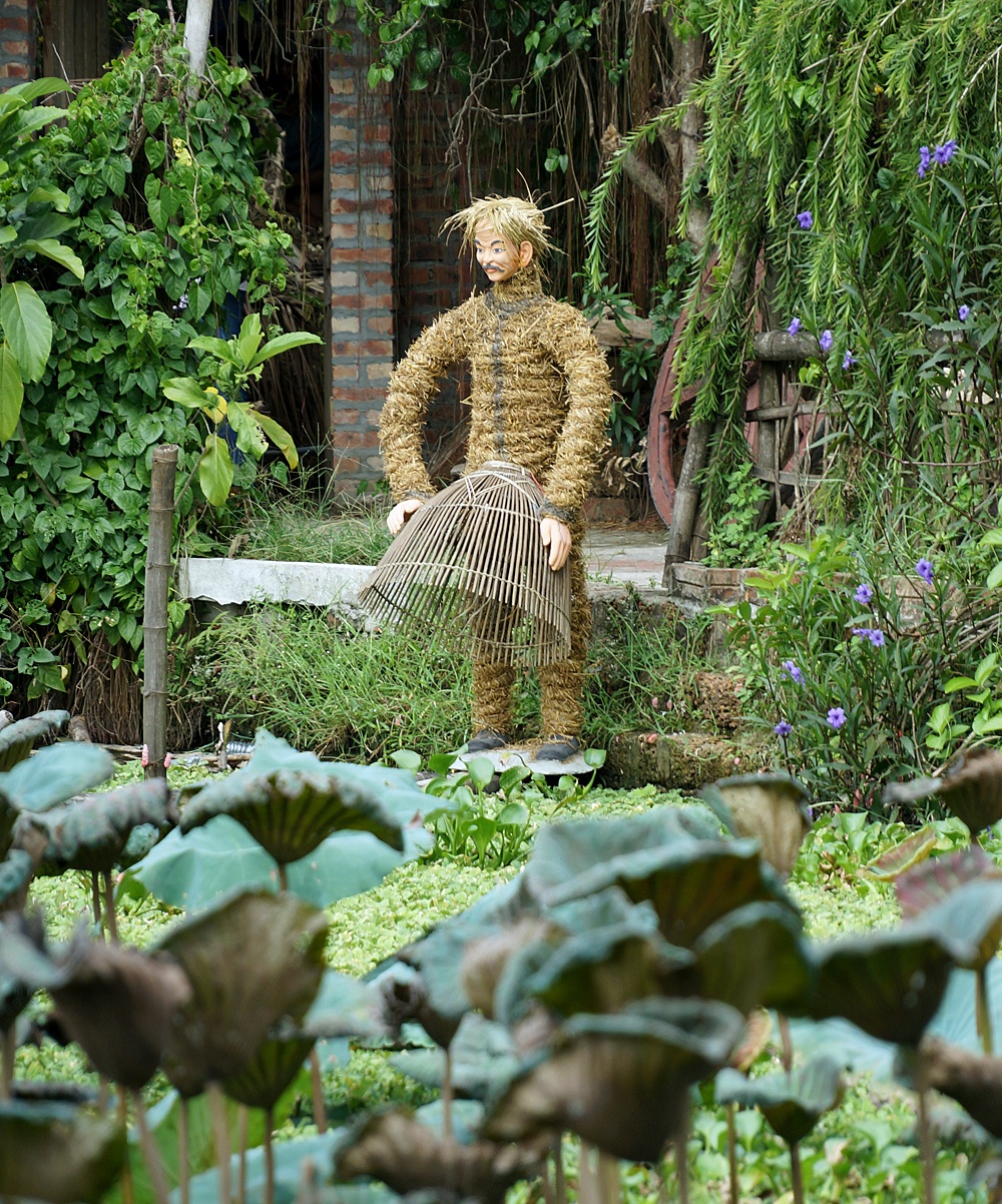 Kèm theo đó là những hình vẽ về nông dân được làm bằng rơm rạ. Theo các họa sĩ, để làm những sản phẩm này hoàn chỉnh mất từ 2 đến 3 ngày. Bên trong mỗi sản phẩm sẽ được đúc bằng xi măng rỗng để dễ di chuyển và không bị mục nát nếu gặp trời mưa.