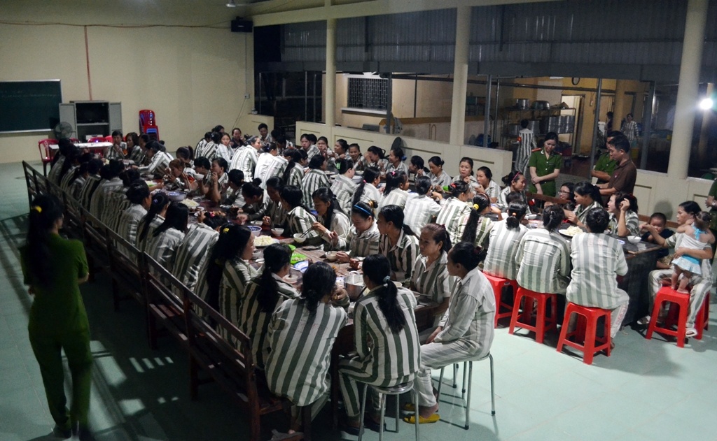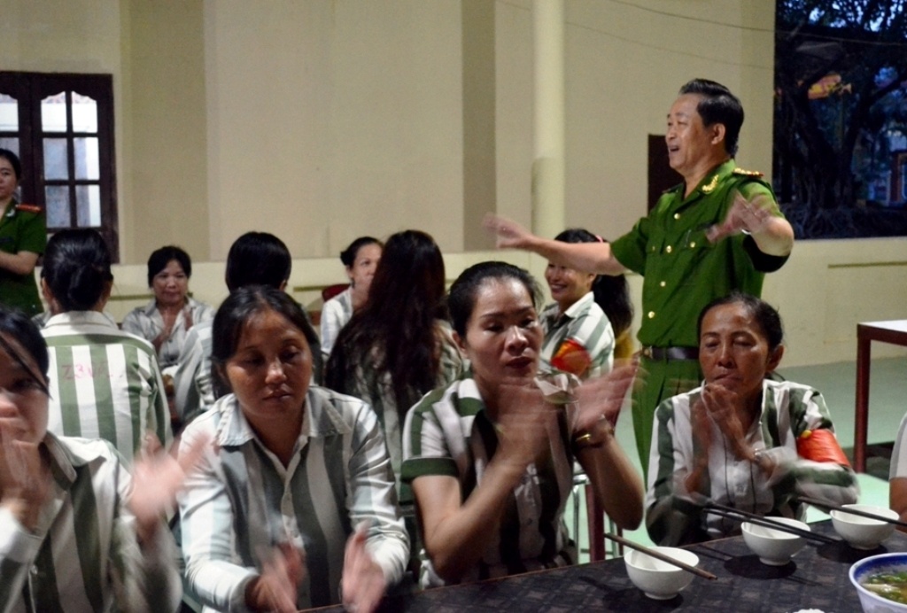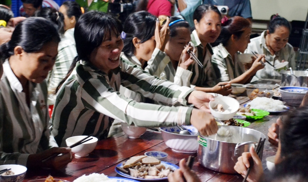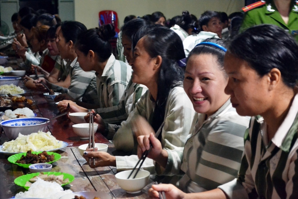 | Bữa cơm của những nữ phạm nhân tối 30/8 không chỉ có tiếng cười. Xen lẫn đó là những tiếng sụt sùi với đôi mắt đỏ hoe. |