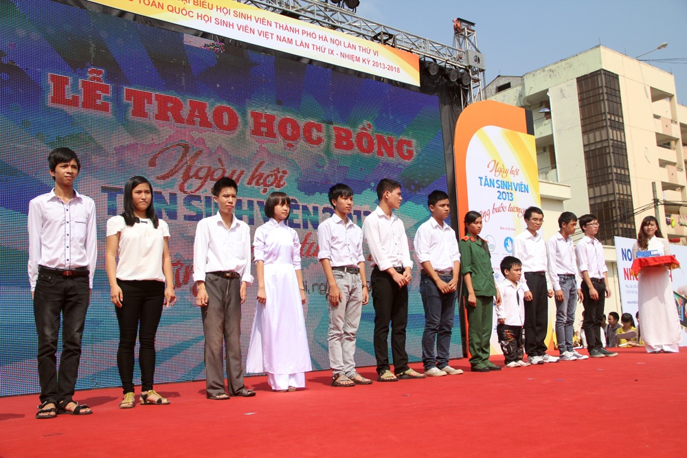 | Bên cạnh đó, trong buổi lễ khai mạc, ban tổ chức còn trao tặng 40 suất học bổng cho tân thủ khoa xuất sắc và tân sinh viên có hoàn cảnh khó khăn. Tổng giá trị các học bổng lên tới 265 triệu đồng. |