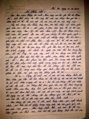 T/b: Anh Loan à, sau bao đêm nằm suy nghĩ, em đã nhận ra lỗi lầm của mình. Em ân hận vì đã làm khổ bố, khổ các anh chị, khi anh nhận được thư này mong anh hãy đặt lá thư này lên bàn thờ bố, để em được gửi lời xin lỗi tới bố".