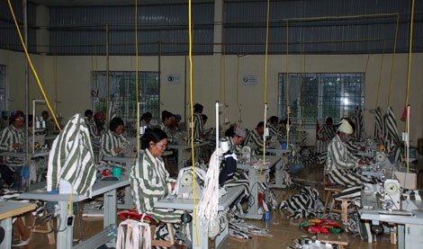 | Phạm nhân nữ lao động trong xưởng may của Trại giam Tân Lập. |