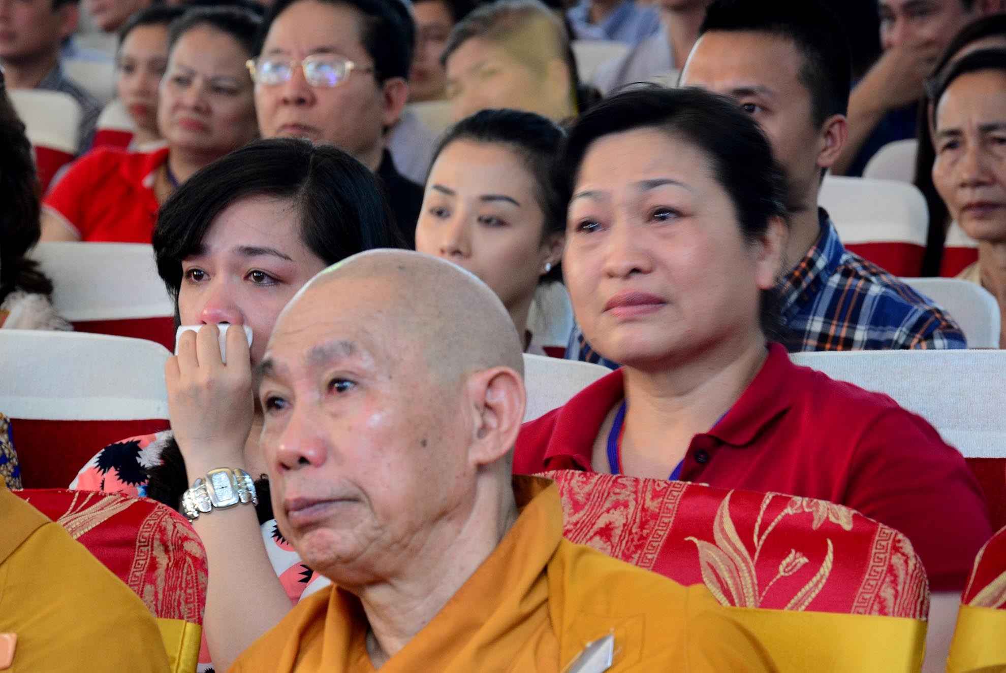 | Nhiều người không cầm được nước mắt khi xem trình chiếu những hình ảnh đạn, pháo của tàu chiến Trung Quốc bắn liên tục vào các chiến sĩ đang làm nhiệm vụ ở Gạc Ma. |