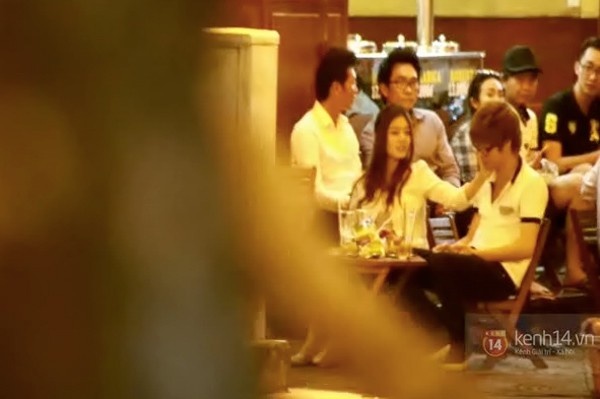 | Bùi Anh Tuấn và bạn gái Lily Luta đi uống cà phê tại quán trung tâm Sài Gòn. |