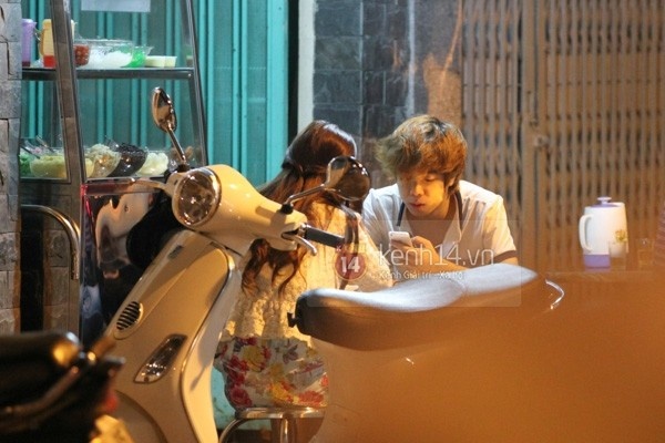 | Sau khi uống cà phê với bạn, Bùi Anh Tuấn lại lái xe máy chở bạn gái đi dạo phố. |