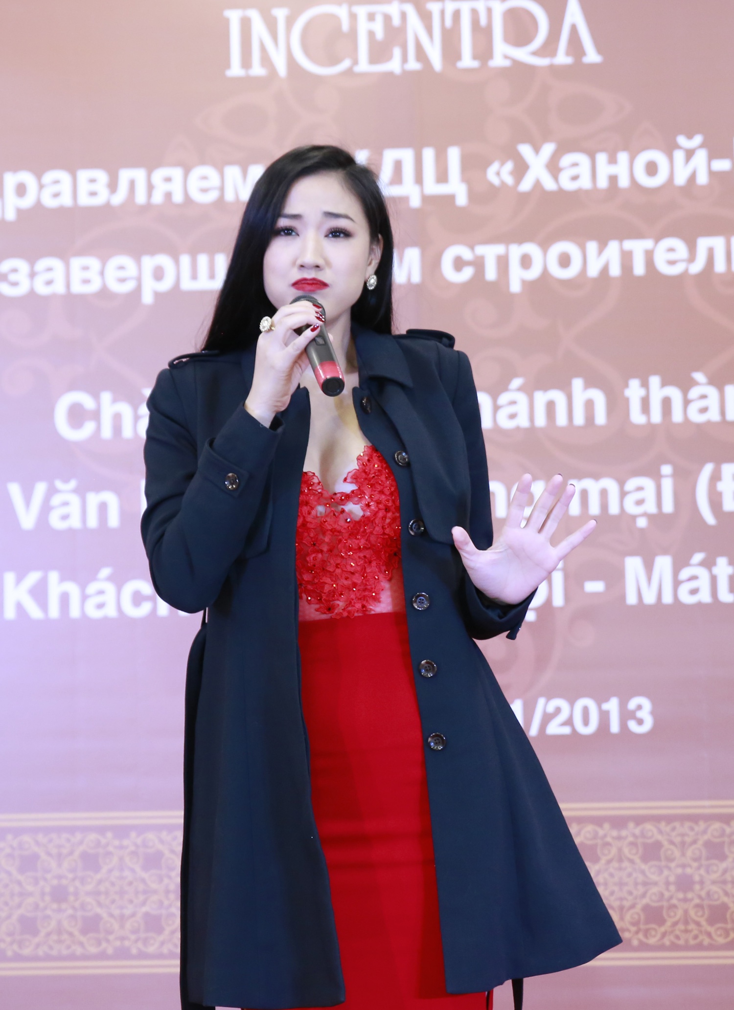 | Vì trời lạnh nên Maya đành chịu xấu, mặc cả áo khoác lên hát. |
