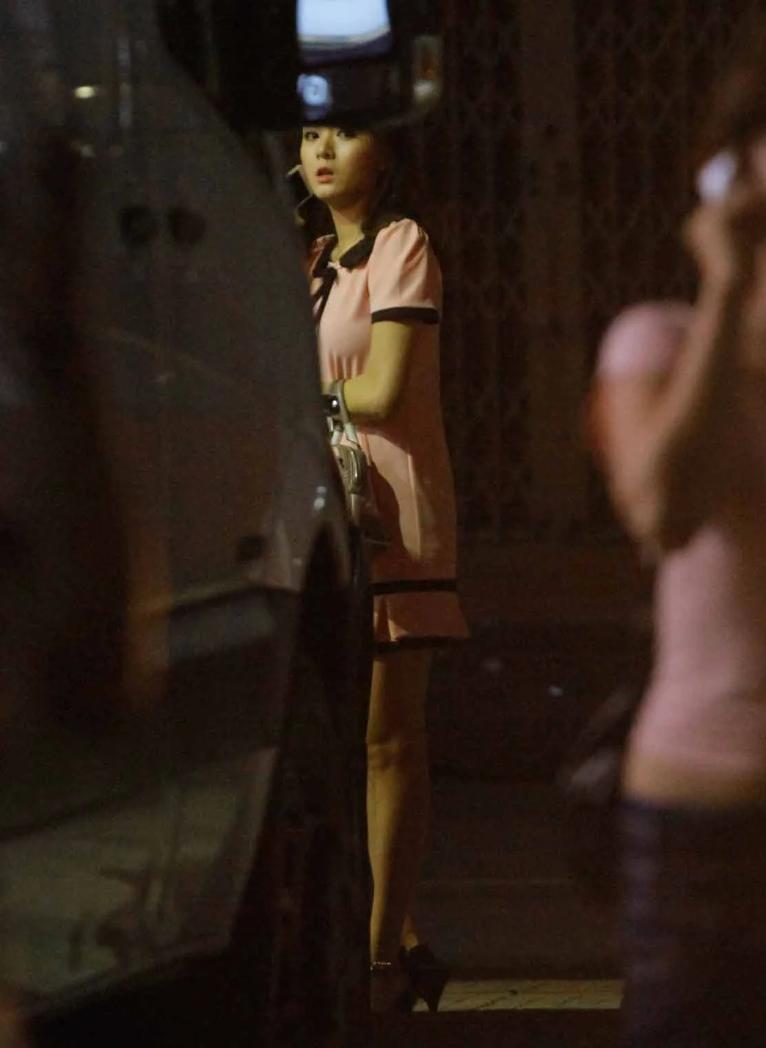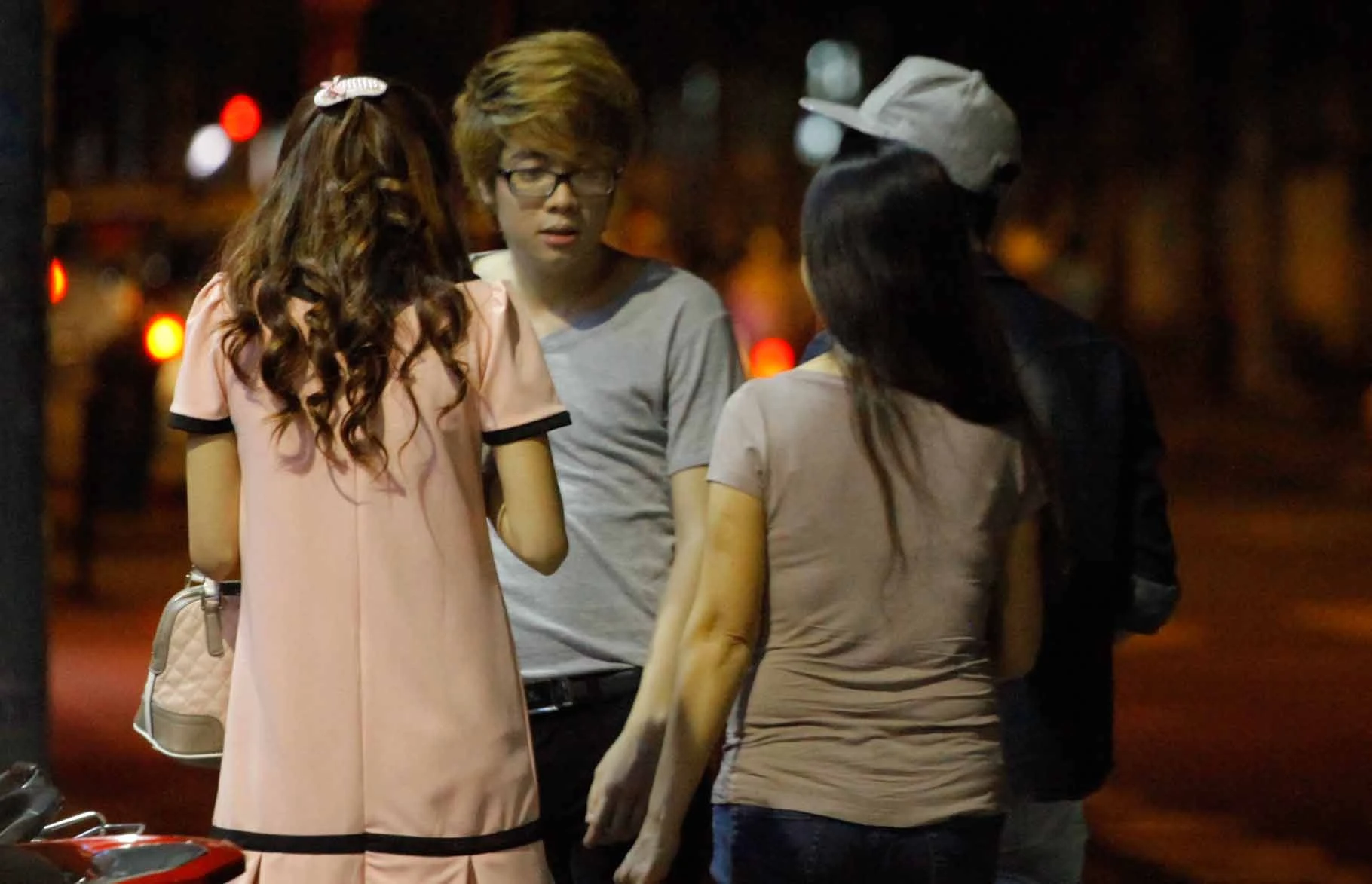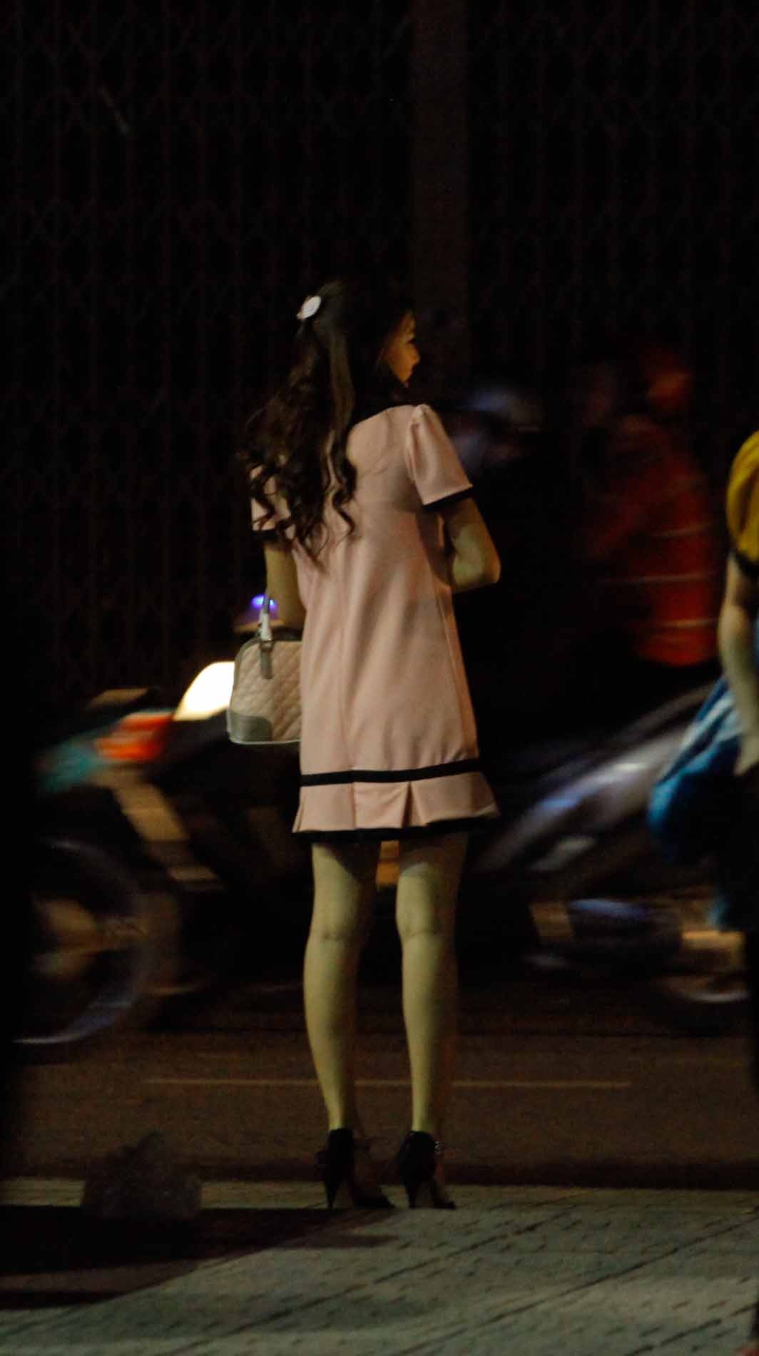 | ... Cô đứng chờ bạn trai ở phía bên ngoài. |