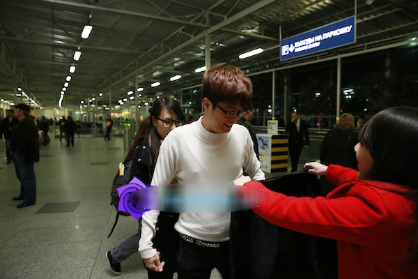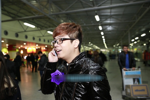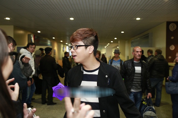 Trong lúc di chuyển ra khỏi sân bay, Bùi Anh Tuấn cũng tranh thủ thay áo khoác ngoài. Sau thời gian dính nghi án gầy còm do "đập đá", chàng ca sỹ trẻ đã lấy lại phong độ và cũng đã "có da có thịt" hơn.