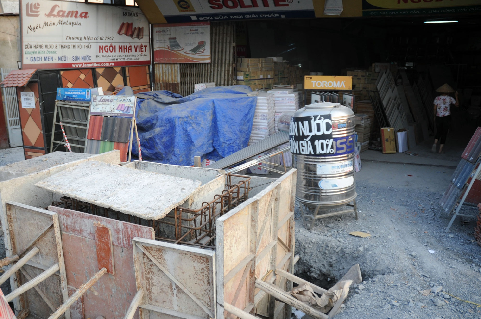 | Từ ngày công trình khởi công, các lô cốt mọc lên chắn luôn cả lối vào nhà dân. |