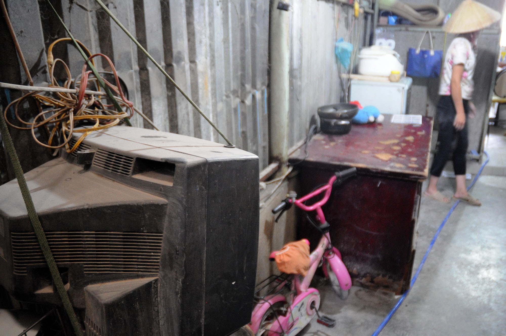 | Những vật dụng sinh hoạt như nồi cơm điện, xoong nồi, tivi...cũng chịu chung số phận. |