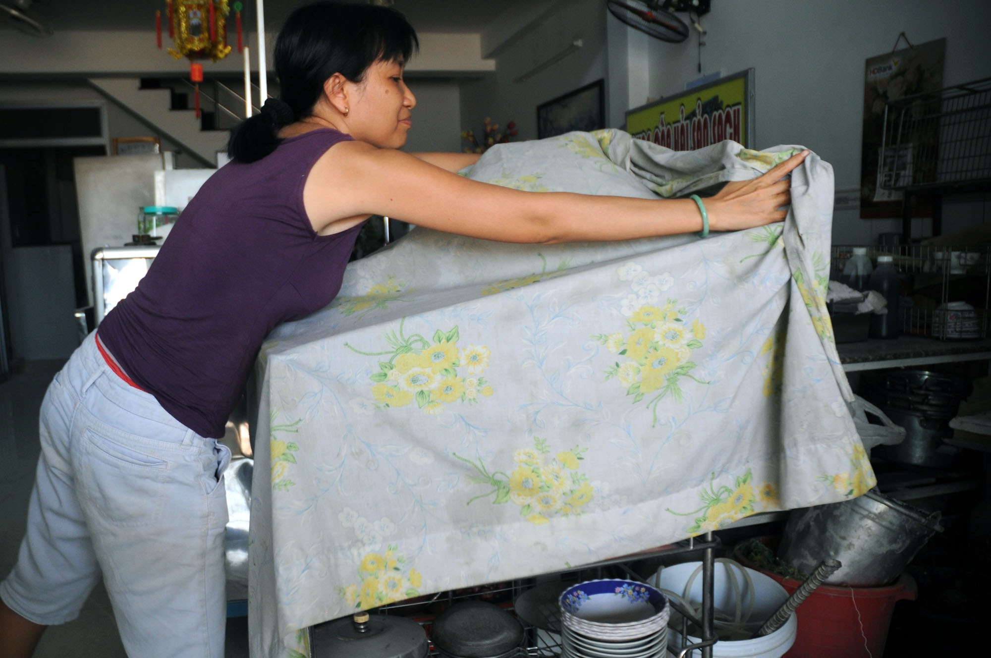 | Hầu hết các hộ dân ở đây không còn dám nấu cơm vì sợ bụi đường bám vào ăn bẩn. "Suốt ngày ăn cơm tiệm đến phát ngán nhưng cũng đành chịu, đồ nấu cơm bị bụi bám hết rồi", một bà nội trợ ở đây than. |