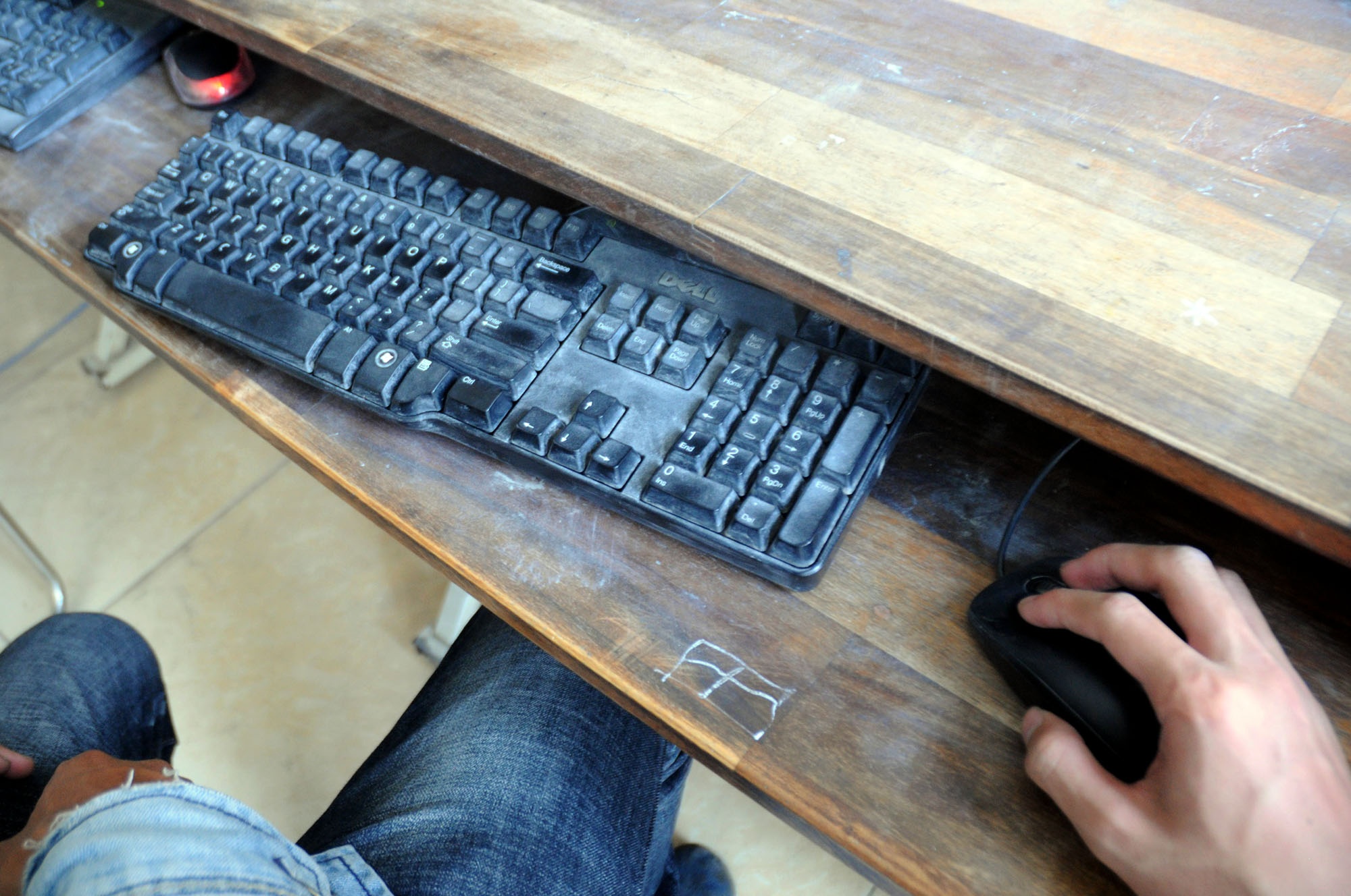 | Bàn phím máy tính trắng mốc vì bị bụi bám từ ngày này qua ngày khác. |