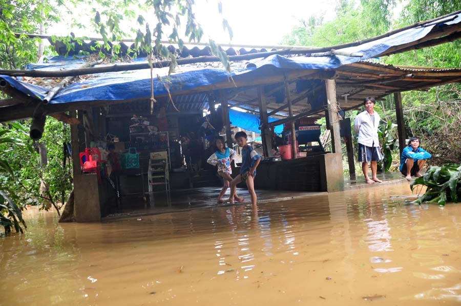 | Tại nhiều khu vực trong thôn vẫn còn ngập sâu trong nước. |