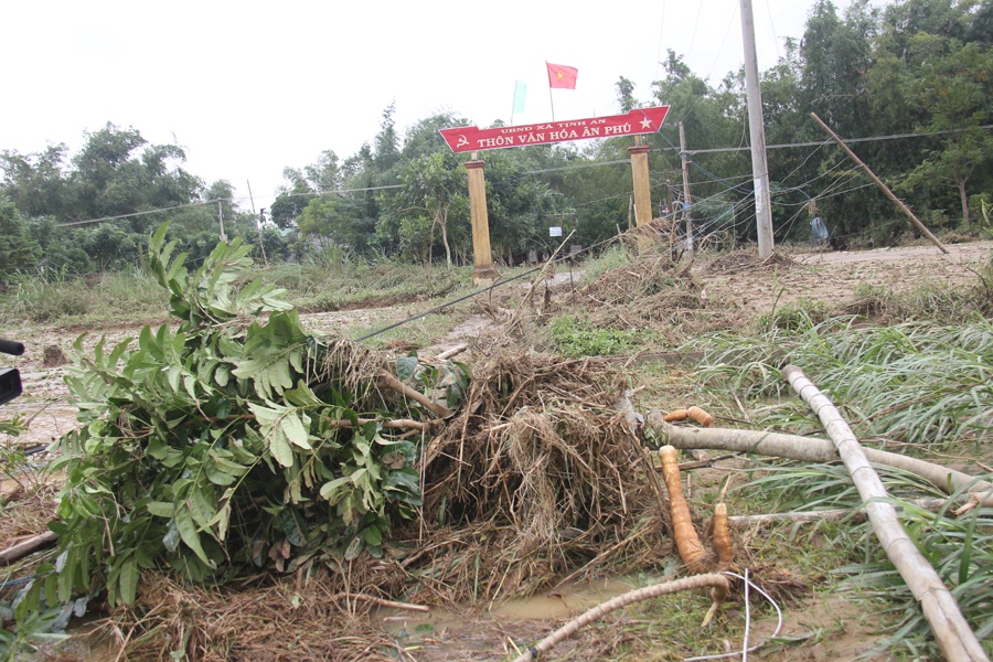 Lũ đã rút đi, thế nhưng tại thôn An Phú (xã Tịnh An, huyện Sơn Tịnh, Quảng Ngãi), cùng với bùn lầy sâu đến đầu gối, không ít nơi nước vẫn còn ngập đến 1,5m. An Phú tan nát sau lũ.