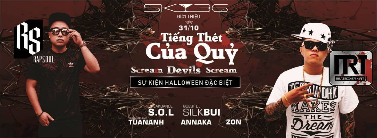 Tại SKY36, đêm Halloween sẽ thêm sôi động và bùng nổ cùng sự kiện được tổ chức với sự tham gia của các nghệ sĩ đầy cá tính: rapper hàng đầu Quân Rapsoul, beatboxer nổi tiếng Mr T, và nhóm nhảy tài năng S.O.L , kết hợp cùng các DJ Annka, Tuấn Anh, Zon và DJ Hip Hop nữ tính Silk Bùi...