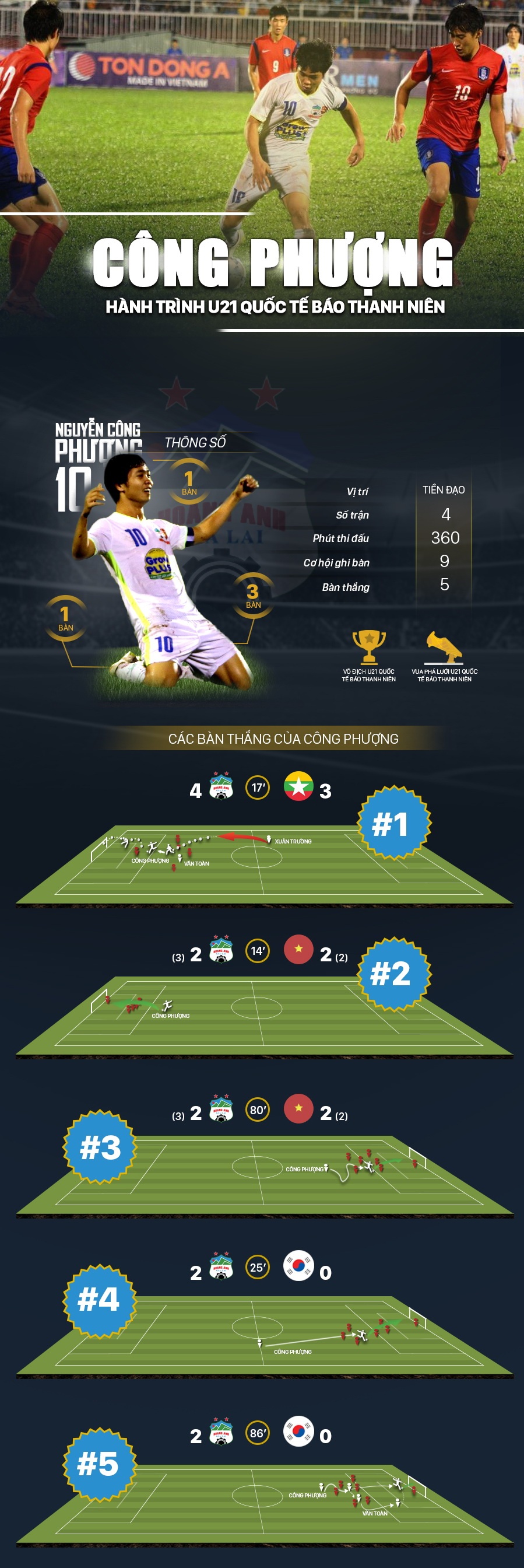 Khả năng săn bàn toàn diện và bùng nổ là những gì Công Phượng đã thể hiện ở giải U21 Quốc tế 2015. Đây là màn "chào sân" ấn tượng với CLB mới Mito Hollyhock của tiền đạo số 10.