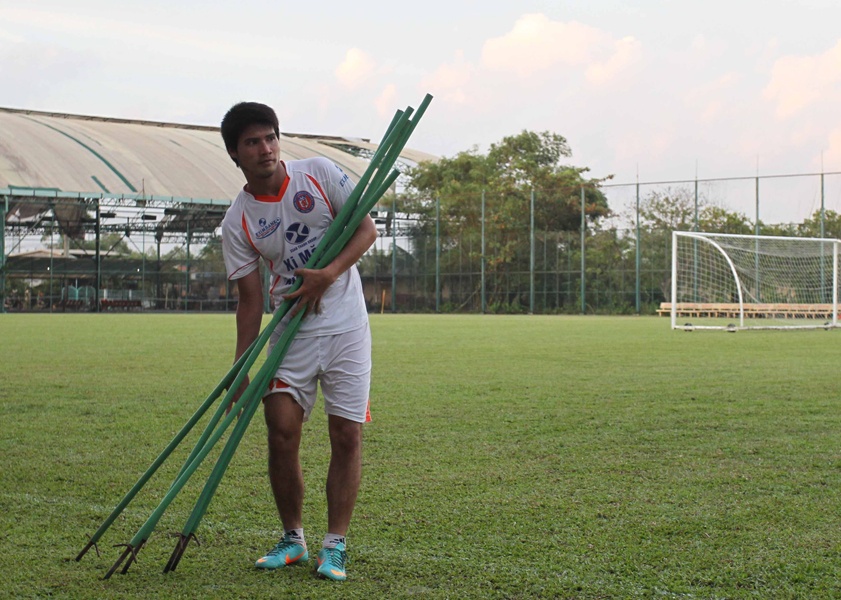 | Số ít cầu thủ XMXT Sài Gòn bước vào tập luyện với không khí u buồn. |