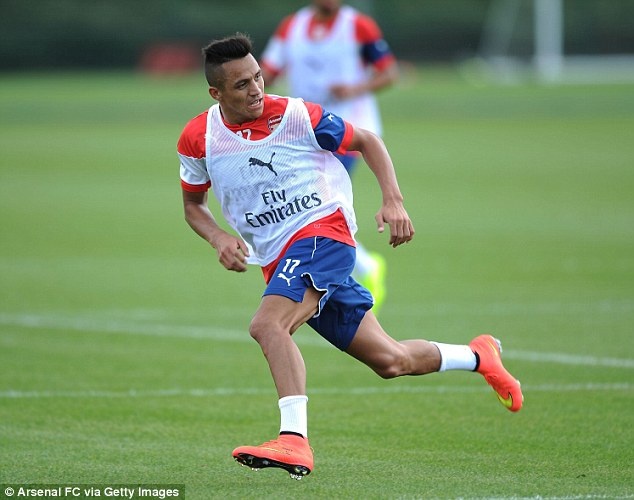 | Tuyển thủ Chile rất tích cực tập luyện. Theo tiết lộ của HLV Wenger, chân sút 25 tuổi sẽ có trận ra mắt Pháo thủ trong cuộc so tài với Benfica trong khuôn khổ Emirates Cup vào tối mai. |