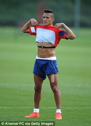 | Do vừa trải qua kỳ nghỉ hè nên Sanchez được các chuyên gia y tế kiểm tra kỹ lưỡng về thể lực. Trong buổi tập anh phải đeo một thiết bị y tế trên người để các bác sĩ tiện theo dõi tình hình sức khỏe. |