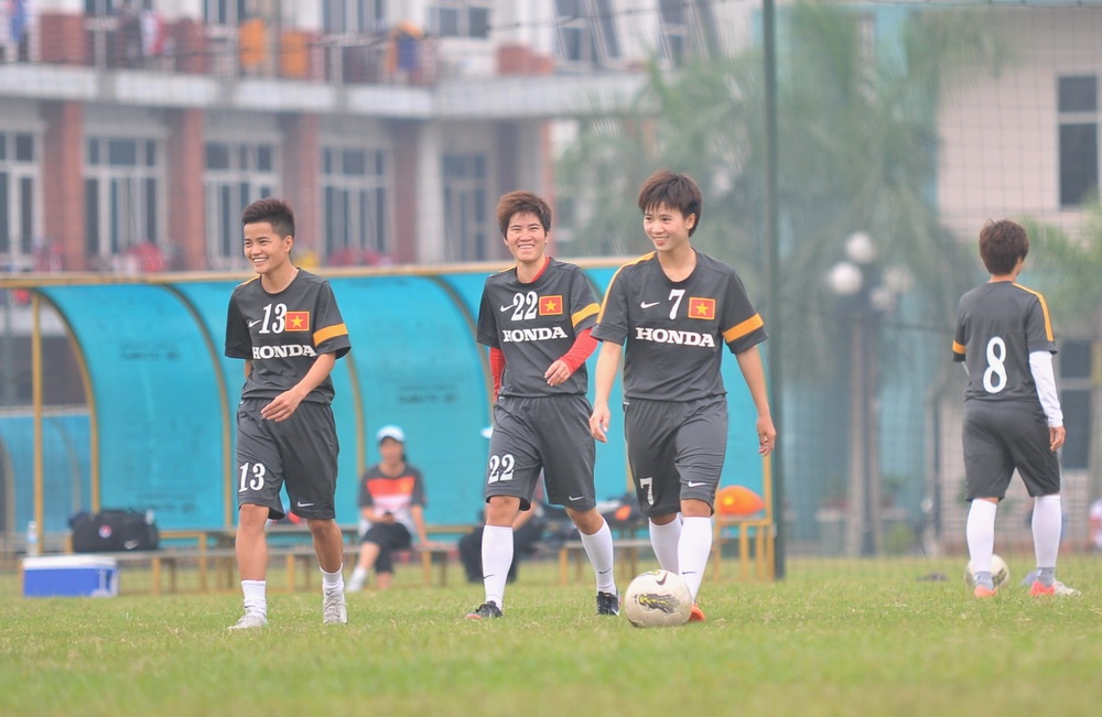 | Dù có mức thu nhập thấp hơn rất nhiều so với tuyển thủ bóng đá nam nhưng nụ cười vẫn luôn hiện diện trong các buổi tập cực nhọc của các 'cô gái vàng Việt Nam'. |