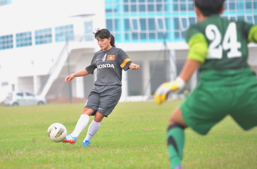 | Pha dốc bóng tốc độ trong màn đá đối kháng của ĐT nữ Việt Nam. |