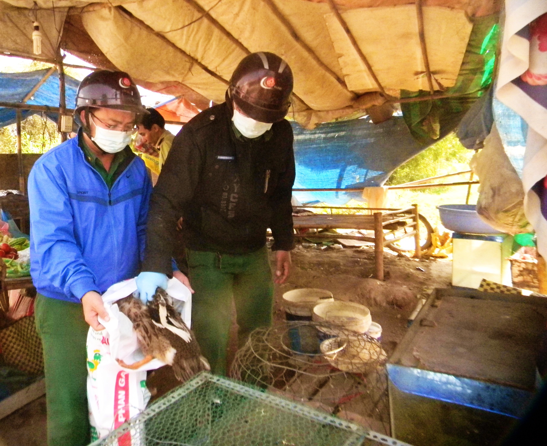 | Đến chiều 17/2, cả nước có 24 ổ dịch tại 11 tỉnh là Đắk Lắk, Long An, Kon Tum, Tây Ninh, Cà Mau, Khánh Hoà, Quảng Ngãi, Nam Định, Phú Yên, Lào Cai và Bà Rịa-Vũng Tàu. Tổng số gia cầm cả nước mắc bệnh là trên 23.800 con và 31.000 con bị tiêu hủy. Tại TP.HCM, các cơ quan chức năng đang tích cực phòng chống lây lan dịch vào địa phương bằng nhiều biện pháp như tiêu hủy gia cầm lậu, không rõ nguồn gốc, tuyên truyền bệnh dịch tới người dân... Trong ảnh: Đoàn liên ngành huyện Bình Chánh kiểm tra, thu hồi và tiêu hủy gia cầm tại một điểm bán không kiểm dịch trên địa bàn. |
