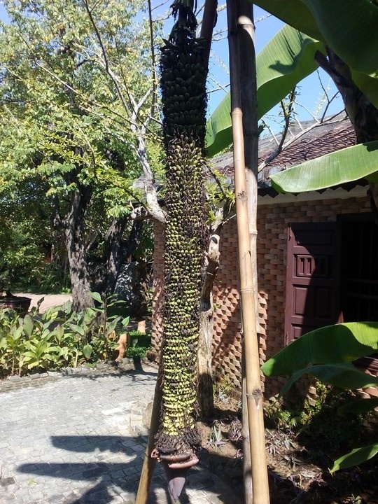 Theo người quản lý của khu du lịch, buồng chuối hàng trăm nải nằm bên cạnh một ngôi nhà cổ này bắt đầu trổ từ khoảng thời gian sau Tết Nguyên đán cho đến nay. Buồng chuối có hàng trăm nải đan xen nhau đếm không xuể với chiều dài khoảng 2 m. Hiện tại, buồng chuối vẫn đang trổ tiếp vì búp chuối vẫn còn khá to.