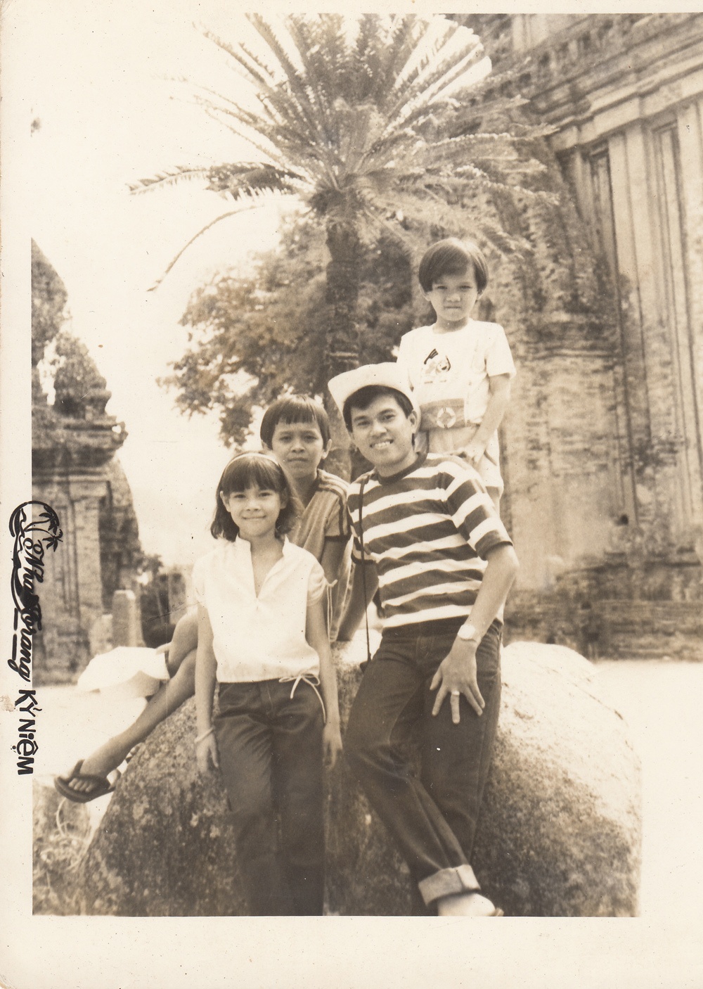 | Thanh Thảo chụp cùng anh chị em trong gia đình trong một chuyến đi chơi. Lúc này, cô đã điệu và biết làm duyên trước ống kính. |