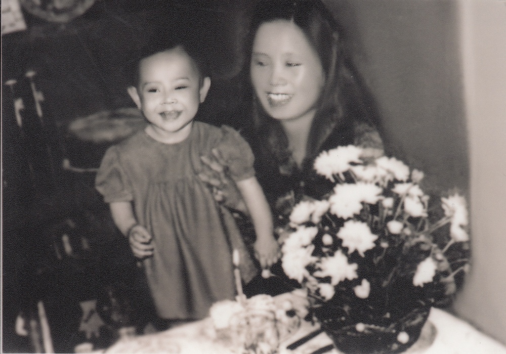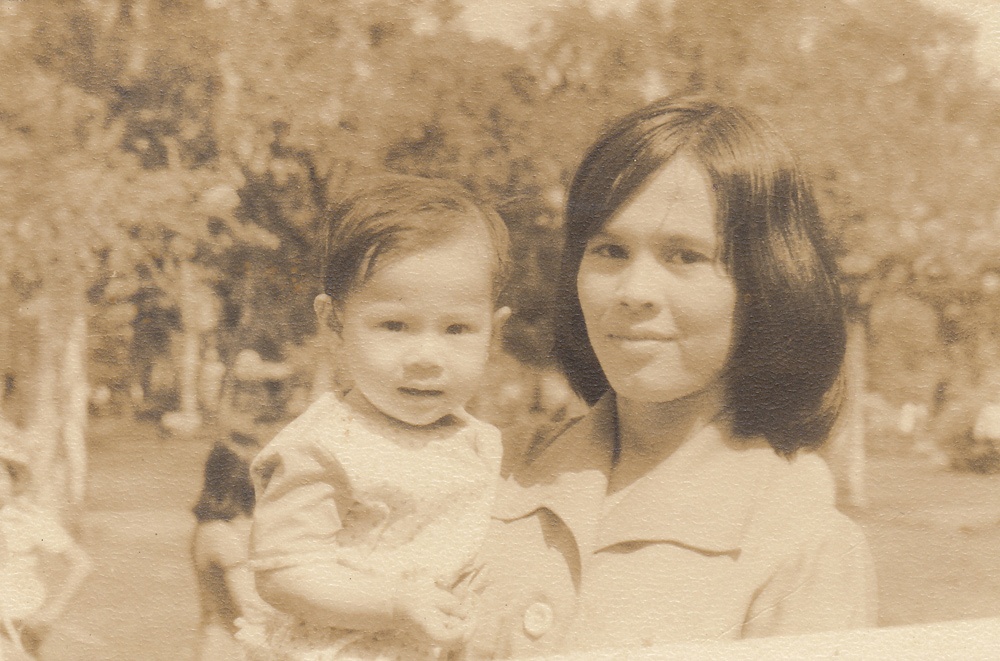 | Thanh Thảo chụp cùng mẹ khi 1 tuổi. Hồi nhỏ, nữ ca sĩ trông rất giống con trai. |