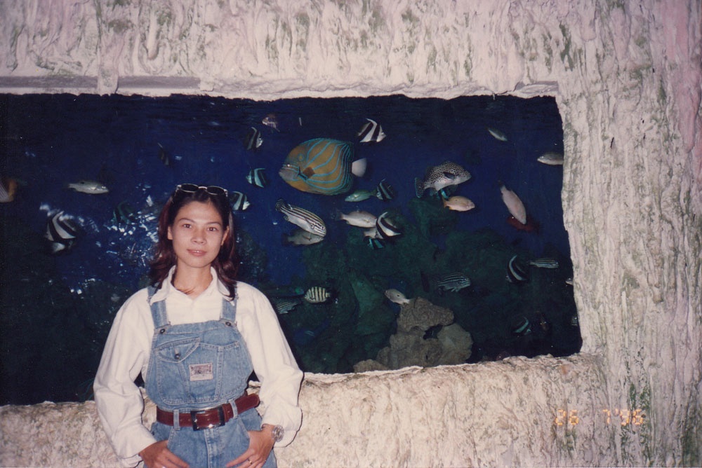 | Thanh Thảo lúc này 10 tuổi, rất thích được ba mẹ cho đi chơi vườn hoa và biển. |