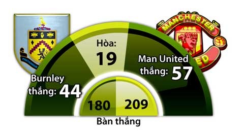 Dù cách biệt rất xa về tên tuổi và đẳng cấp, nhưng Man United lại không lấn lướt Burnley quá nhiều về thành tích đối đầu. Trong 10 lần hai đội chạm trán gần đây, M.U chỉ thắng 4, hòa 5 và thua 1.
