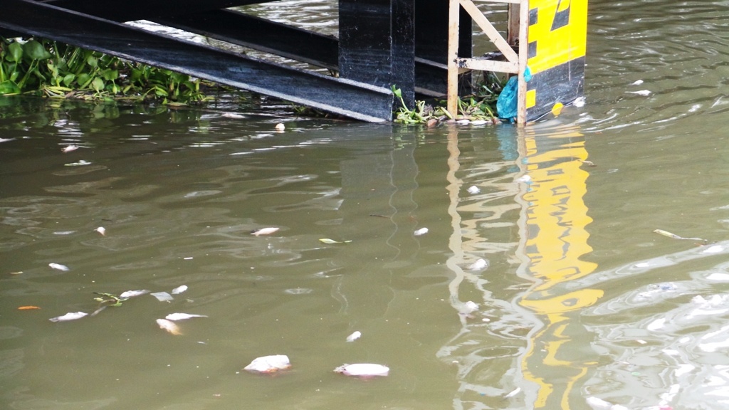 | Xác cá trôi dạt từ nơi tiếp giáp sông Sài Gòn về cầu Trần Khánh Dư (quận 1). |