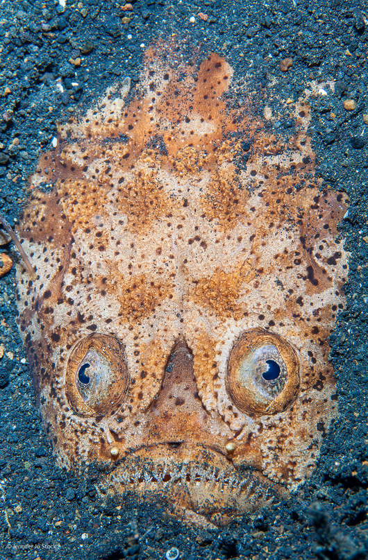 Cá Stargazer (chiêm tinh hay sao Nhật) có tên khoa học là Pleuroscopus pseudodorsalis. Hình dáng xấu xí của con cá khi nó đang giấu mình dưới đáy biển khiến nhiếp ảnh gia Jennifer Jo Stock người Anh “giật mình”. |