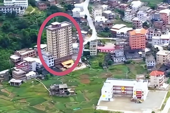 Chính quyền thị trấn Huqiu cho biết công trình bắt đầu khởi công từ năm 2016, thời điểm quy định quản lý đất đai địa phương còn cho phép các hộ dân liên kết dùng chung đất nền để xây nhà cao tầng và hoàn thành sau đó vài năm.