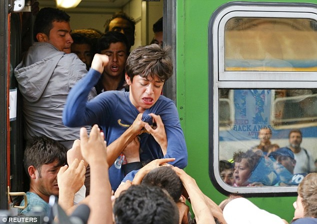 Lúc 8h15 hôm 3/9, nhà ga quốc tế Keleti ở thủ đô Budapest của Hungary đón khách trở lại sau khi ngừng hoạt dộng hai ngày. Ngay lập tức, khoảng 2.000 người di cư xô đẩy và chen chúc để lên tàu với mong muốn tới biên giới Áo. Tuy nhiên, họ phát hiện tàu không đưa họ tới điểm đến bởi giới chức đường sắt Hungary thông báo sẽ không chuyến tàu nào tới Tây Âu trong thời gian tới. Thay vì tới biên giới Áo, đoàn tàu đưa người di cư tới trại tị nạn Bicske – cách thủ đô Budapest khoảng 30 km. Ảnh: Reuters