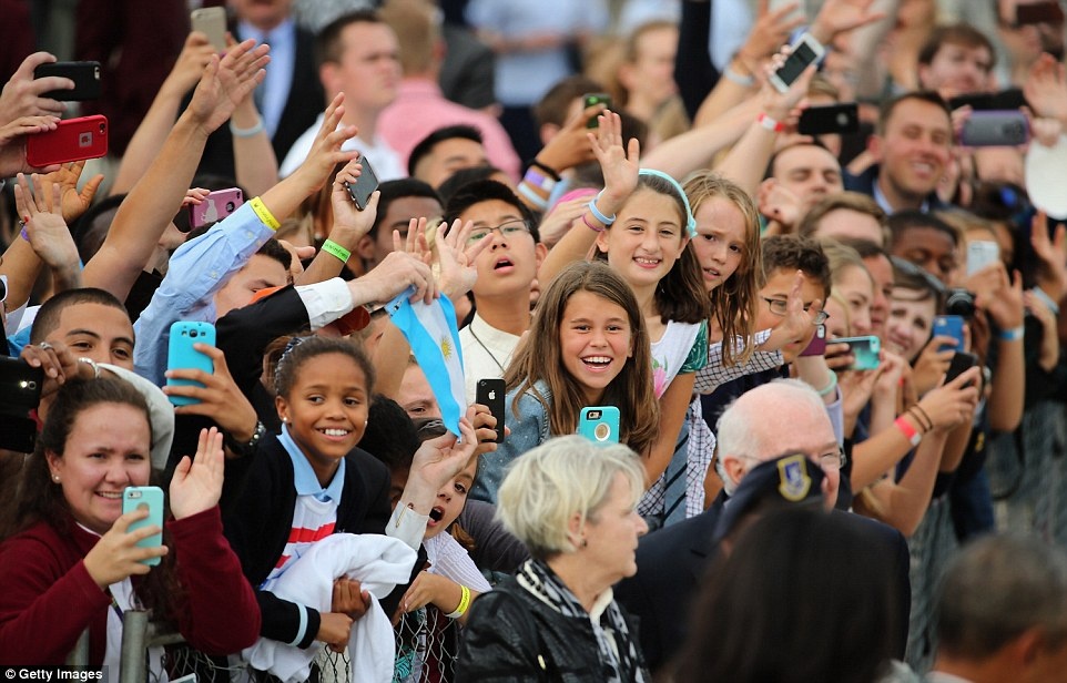 | Đám đông hò reo tên Giáo hoàng khi ông đáp xuống sân bay từ Cuba. Ảnh: Getty |
