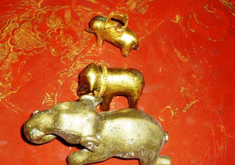 Hai con voi bằng vàng ròng và 1 con voi bằng đồng của vua Hàm Nghi ban cho người dân Phú Gia. |