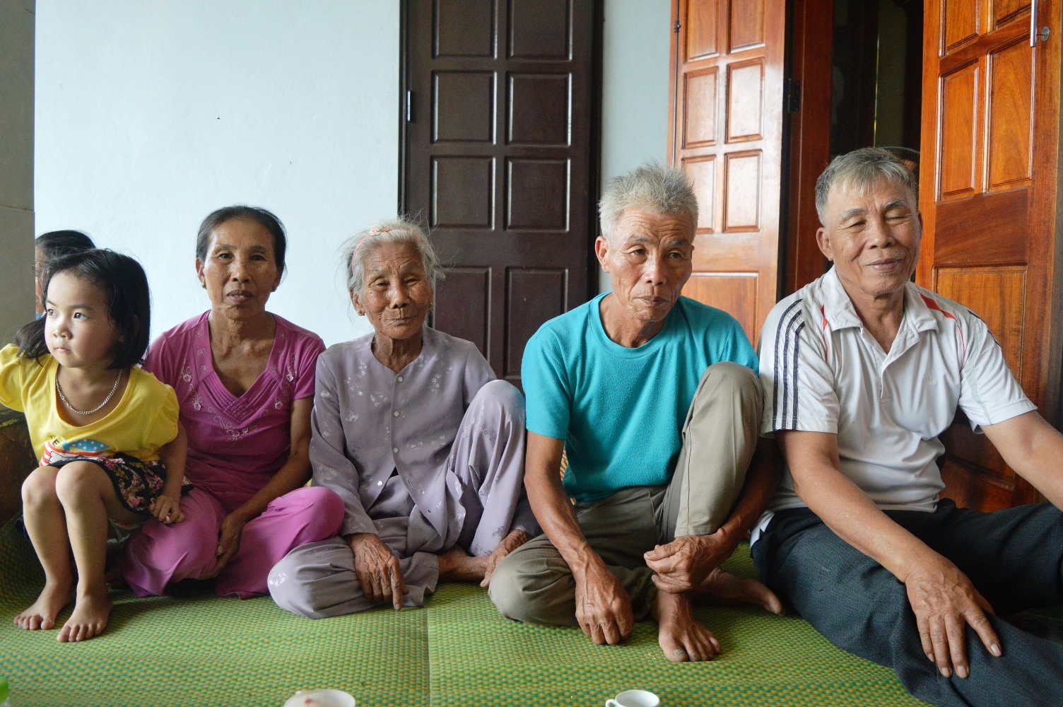 | Ông Hương là con thứ 2 trong 5 chị em lần lượt là bà Hồ Thị Nguỳ (79 tuổi, áo xám), ông Hương, bà Hồ Thị Ồn (71 tuổi, bị bại liệt từ nhỏ), ông Khanh và em gái út là Hồ Thị Thuỳ (67 tuổi, áo tím). Ảnh: Văn Được. |