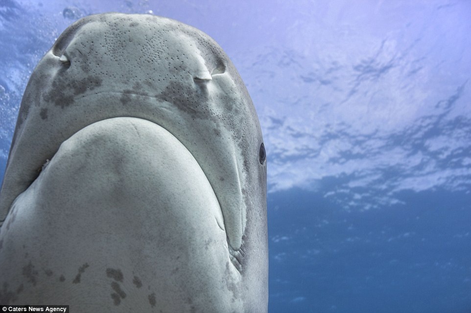 | Cá mập hổ đã bơi đến sát camera của nhiếp ảnh gia Veleria Serna tại vùng biển Bahamas. |