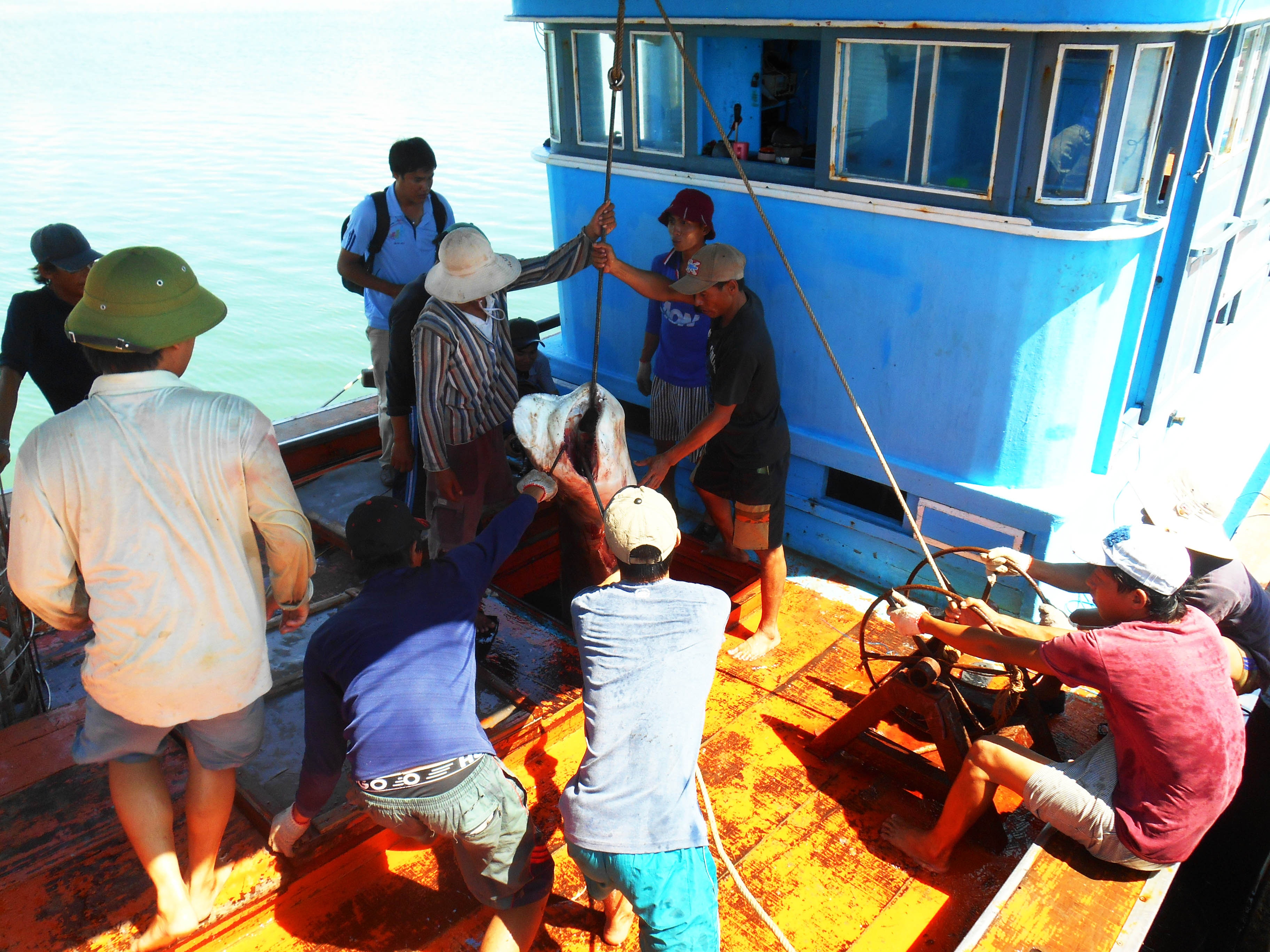 Cá mập khủng đầy khoang thuyền về từ Hoàng Sa
